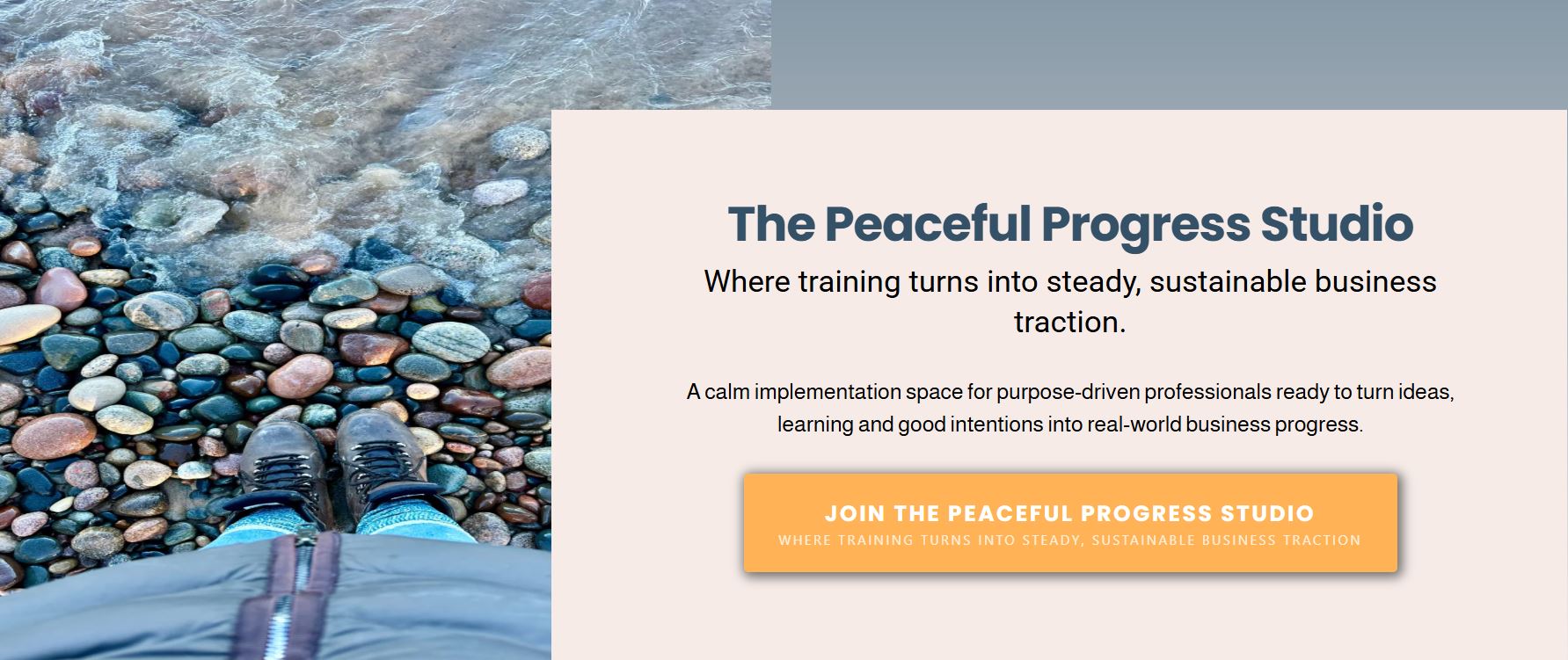 The Peaceful Progress Studio is a calm, ongoing support space for purpose-driven professionals who want help while they’re doing the work — not just before or after.